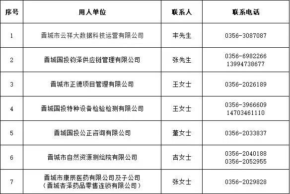 2.晉城國投公司人力資源部 0356-3199987